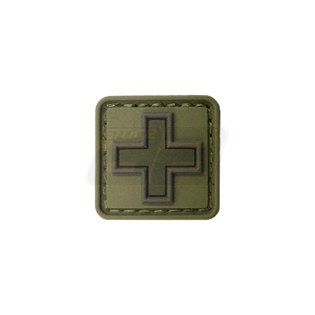 Pitchfork Medic Cross Patch - Olive, 3D patch for medical pouches. Velcro backed. Dimensions: 25 x 25mm.