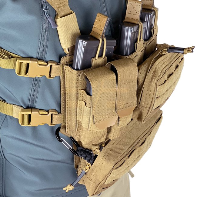The Pitchfork MicroMod Chest Rig Complete Set is a freely configurable, MOLLE system based Chest Rig, which comes complete with pouches and the required shoulder and hip straps. Included in the set are the following components: