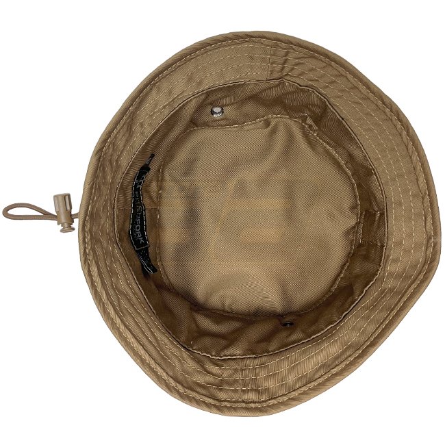 While maintaining the classic Soldier 95 boonie hat shape of the British armed forces, the crown is kept flat for a low profile. On the upper area a 50 x 50mm loop surface can be found to attach an IR reflective patch. Around the hat we used the same nylon-cotton material instead of stiff webbing ensuring an all-around low IR signature. Hidden underneath the circumference a shock cord is sewn in that allows infinitely variable size adjustment for a perfect fit, keeping the selected size by a cord stopper in the back. The brim is kept extremely narrow and slopes down at a steep angle. All other features found on standard models like the chin strap or a neck cover have been left away. Functionality thru simplicity.