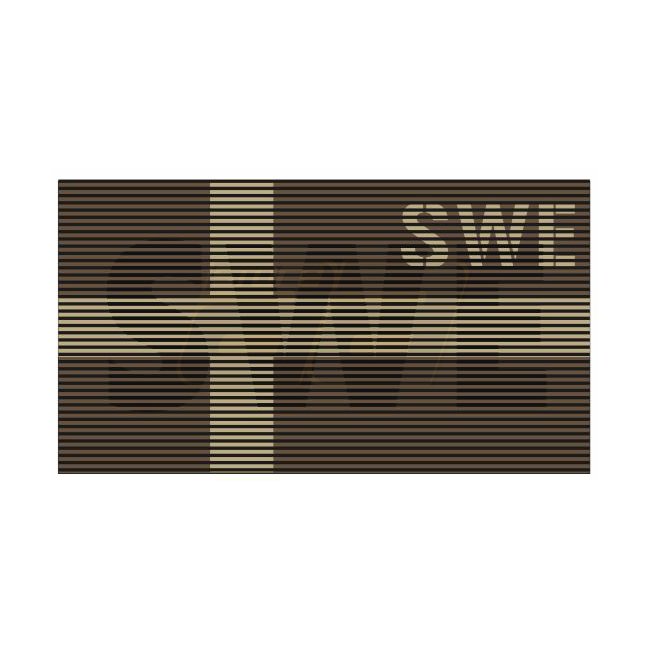 Compact Pitchfork Sweden IR Dual Patch features IR foil on the front for stealth missions and a hook surface on the back for easy attachment. Dimensions: 90 x 50 mm.