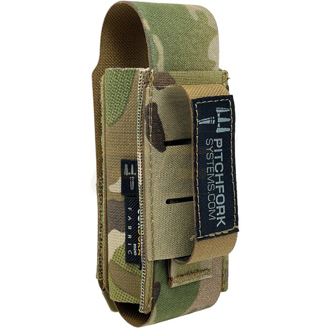 Pitchfork TQ Pouch Closed in Multicam with adjustable flap and Velcro for patches. Made of Cordura 500D Nylon & LaserCut Laminate for durability and lightweight design.