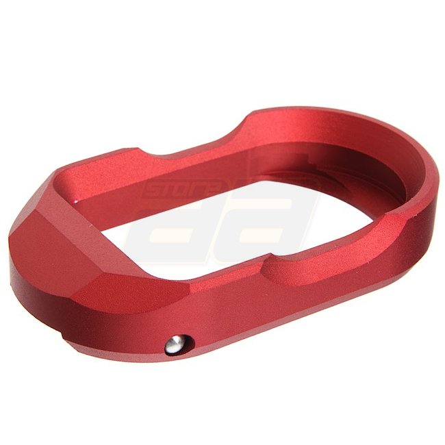 Lightweight red aluminum Magwell for Marui Hi-Capa Gas Blow Back Pistols, facilitating smoother and faster reloads.