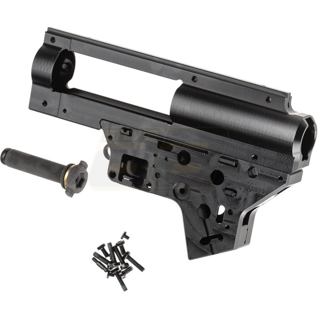 Retro Arms CNC Split Gearbox V2 8mm QSC - Upgrade your airsoft gun with this high-quality, precision-engineered gearbox. Designed for durability and performance, this gearbox features 8mm bearings for smooth operation and quick spring change system for ea