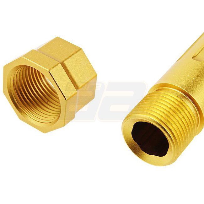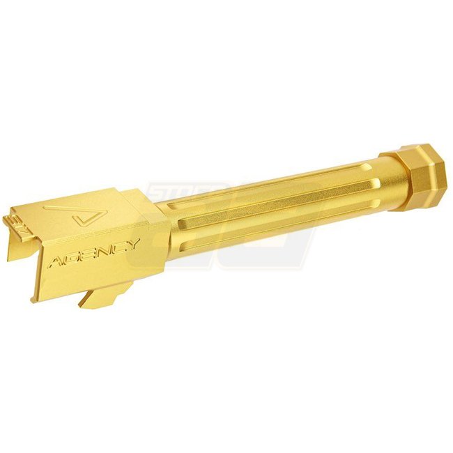 RWA Agency Arms Marui G17 Gen 3 GBB Mid-Line Threaded Barrel in Gold finish offers a sleek upgrade for your G17, enhancing both style and performance.