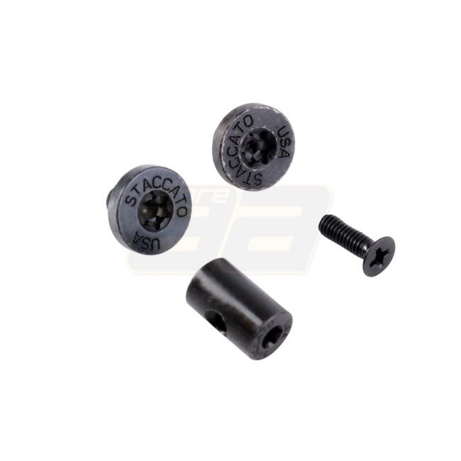 Enhance your SAVIA EMG Staccato 2011 Airsoft Pistol with this precision-machined CNC Steel Grip Screw Set. Easy drop-in installation with authentic Staccato markings.