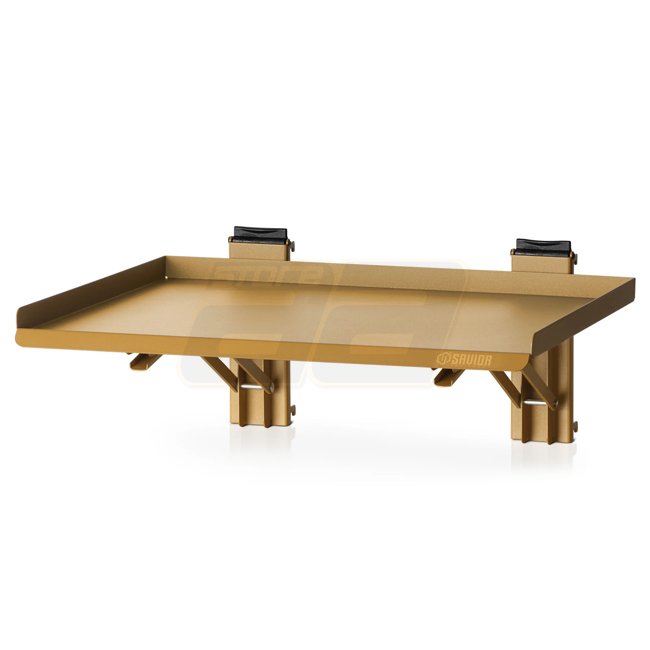 Savior Equipment Wall Rack System Folding Workbench - RAL 8000 - Versatile, foldable workbench for modular wall rail system. Sturdy & space-efficient solution for workspaces.