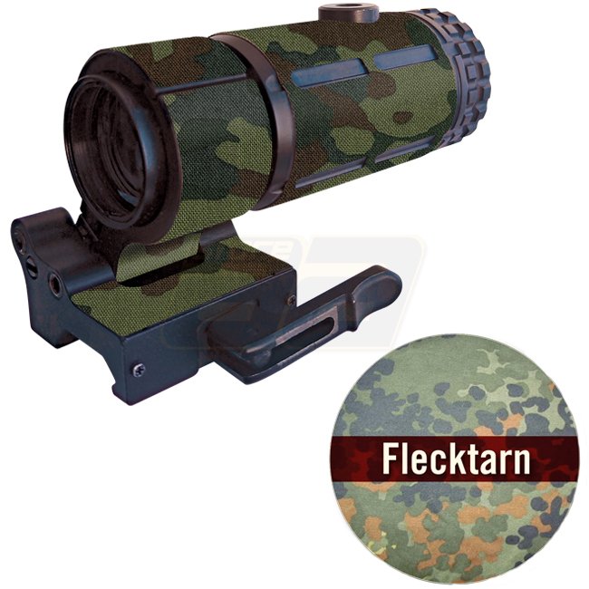 Sightmark Optics Skin SM19063 - Flecktarn is a durable Cordura 500D cover that protects your equipment from scratches and minor damage. It breaks the outline of your sight and is IRR compliant. Compatible with Sightmark T-3 Magnifier (SM19063).