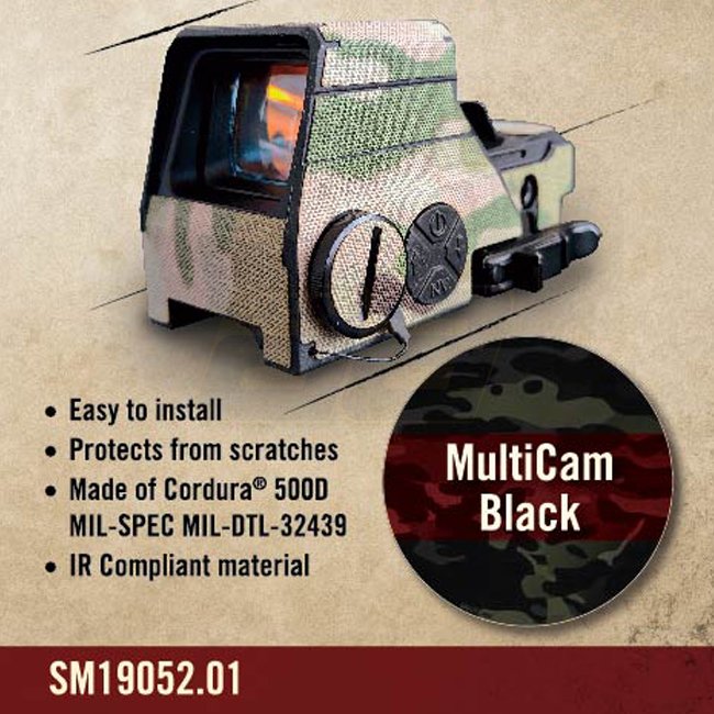 Sightmark Optics Skin SM26034/36 - Multicam Black, a protective cover made of Cordura 500D material to shield your Sightmark Ultra Shot M-Spec LQD and Spec Pro from scratches and minor damage. It doesn't leave residue, breaks the sight outline, and is IRR