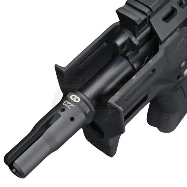 This muzzle brake fits the Silverback MDR-X AEG in a 5.56mm/.223 configuration or any other outer barrel with -14mm CCW thread.