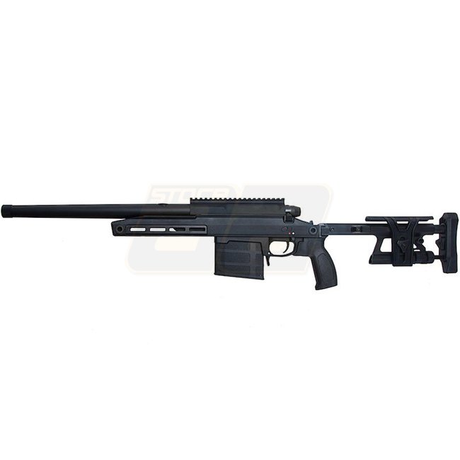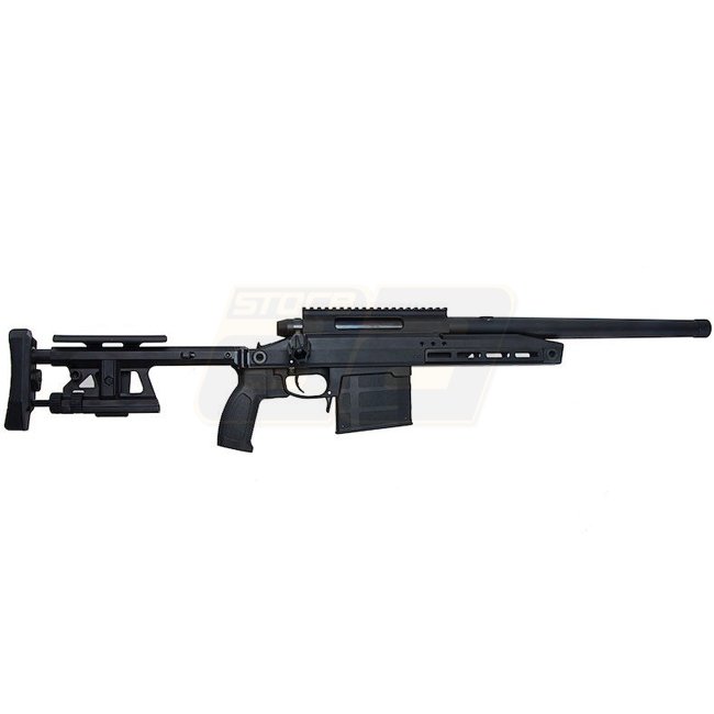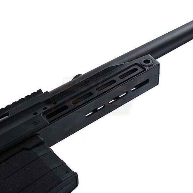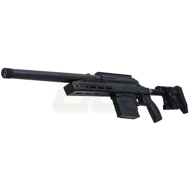 Silverback TAC-41 A Bolt Action Rifle - Black. Spring system, metal/nylon stock, 100-round magazine, 915mm length, 2900g weight, 406mm inner barrel, special muzzle thread, 370-390 FPS velocity, single-shot mode, 50.76-53.51m shooting range, adjustable hop