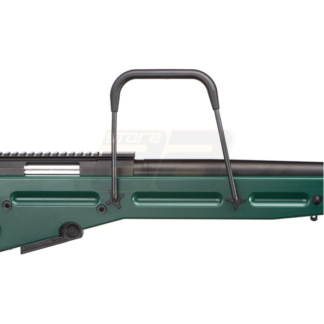 Snow Wolf SV98 Spring Sniper Rifle in Green color offers exceptional power and precision for long-range shooting. Equipped with a sturdy metal and polymer stock, this rifle has a magazine capacity of 65 rounds and a shooting range of up to 60 meters. The