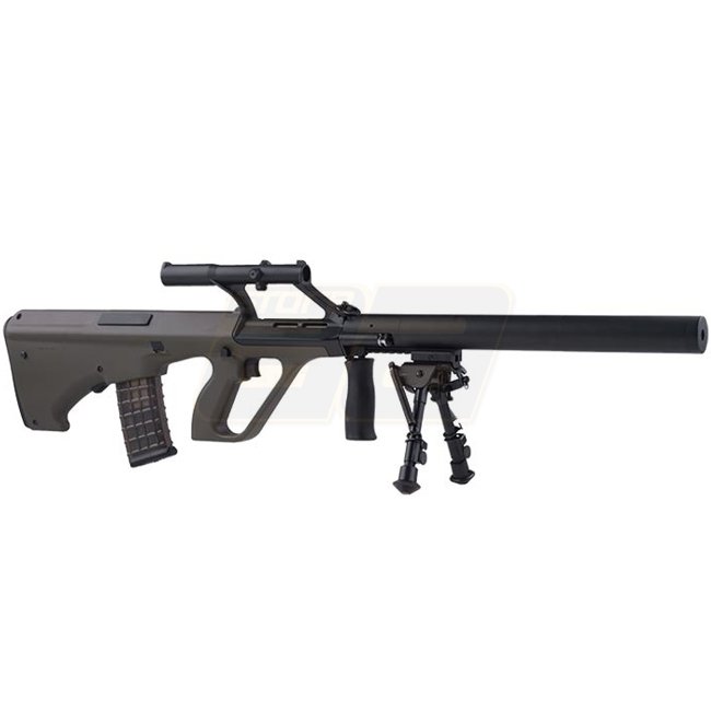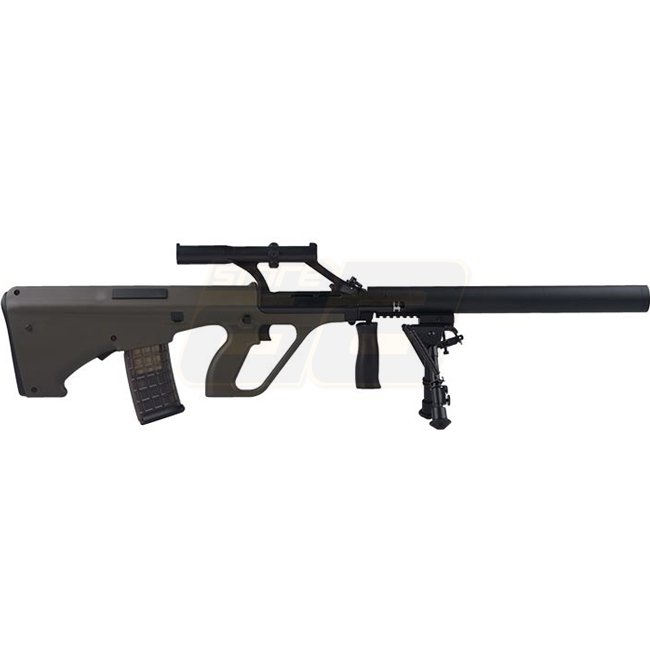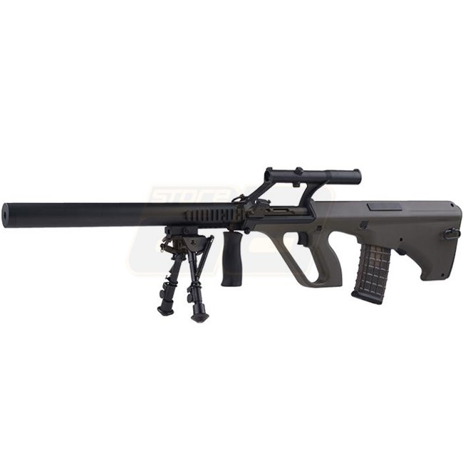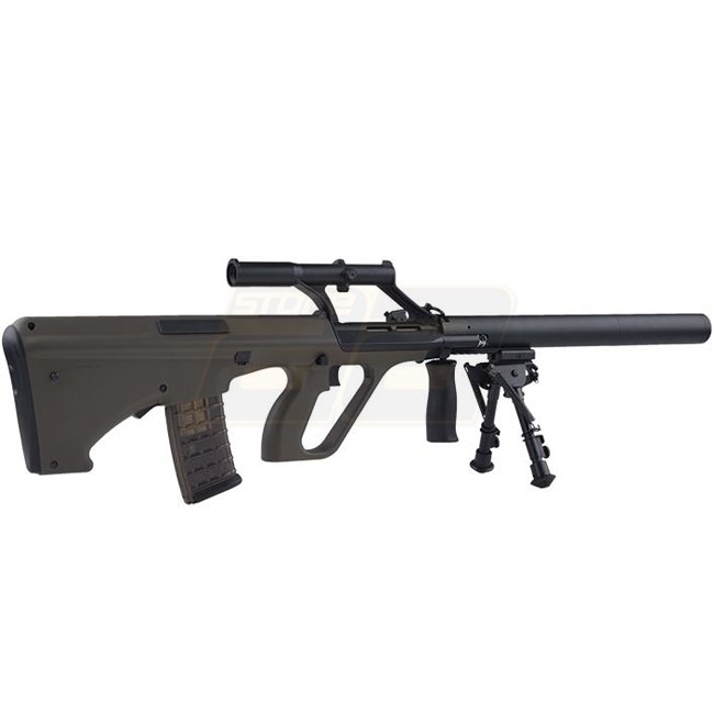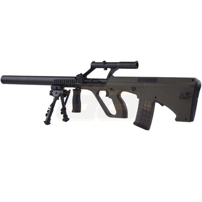 The Snow Wolf SW-20AM AEG in Olive features a Version 3 gearbox, metal/stock polymer material, and a magazine capacity of 330. This airsoft gun weighs 3700g, has a shooting range of 53.51-56.25m, and operates in Semi Auto & Full Auto modes.