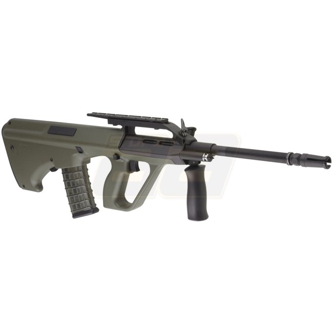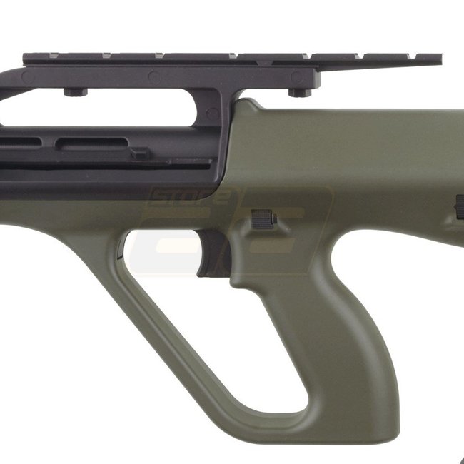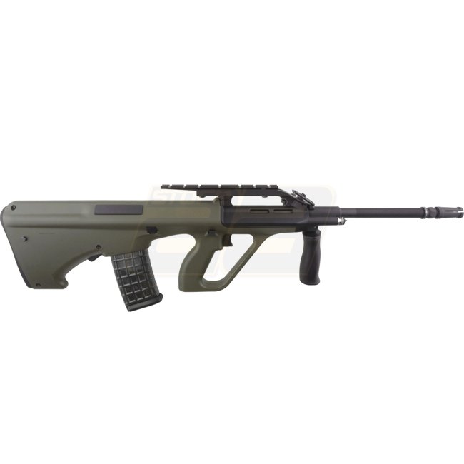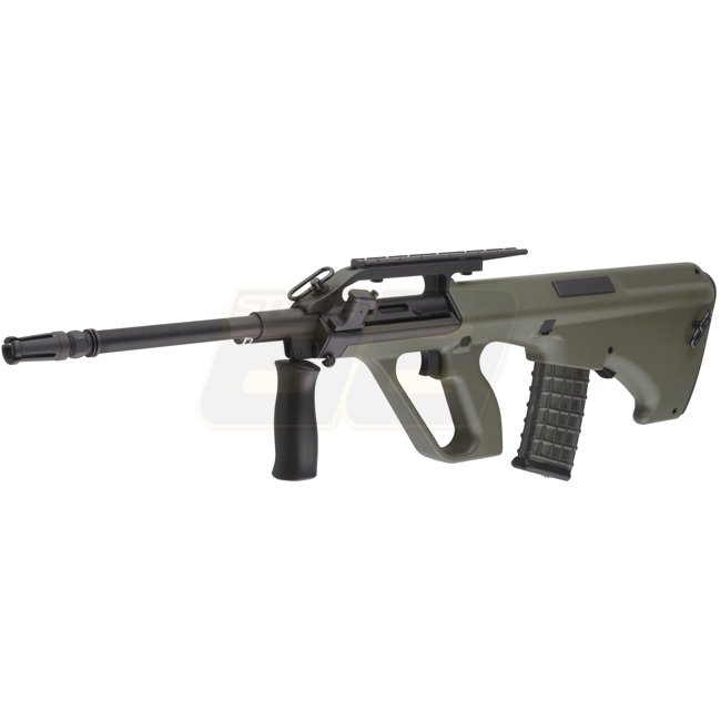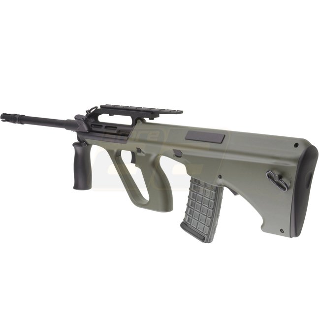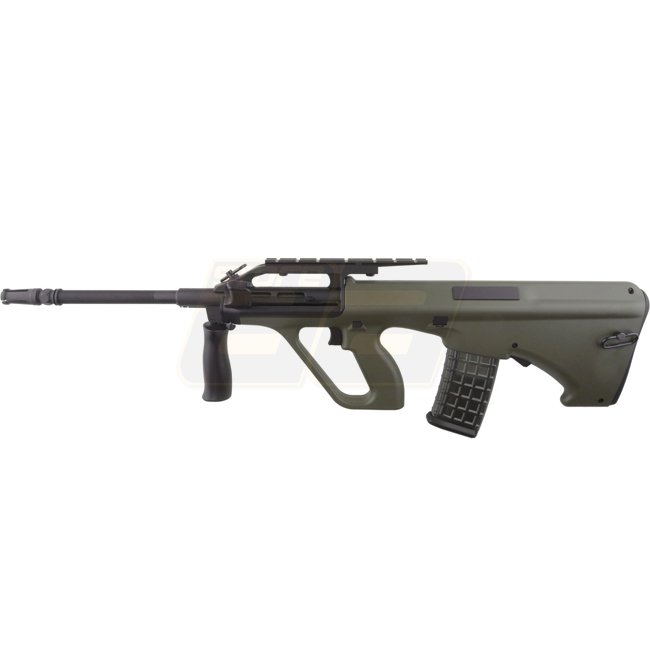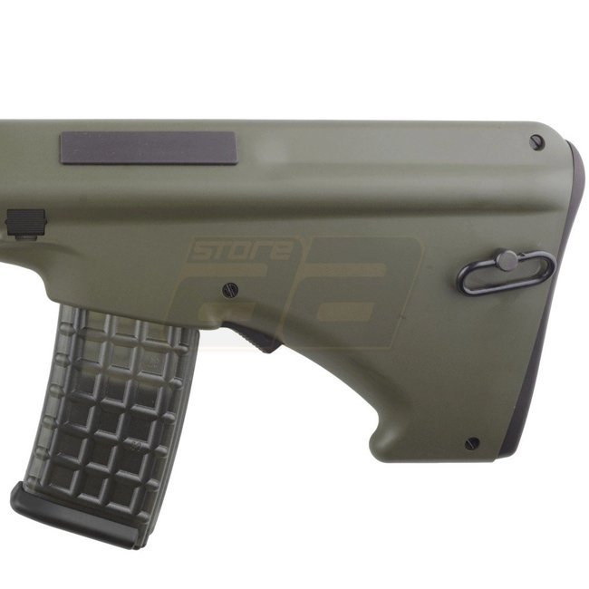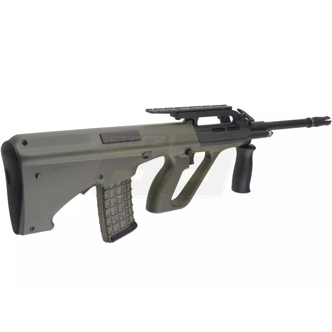 Olive Snow Wolf AEG with Quick Spring Change System, metal receiver, 400-420 FPS, and adjustable hop-up.