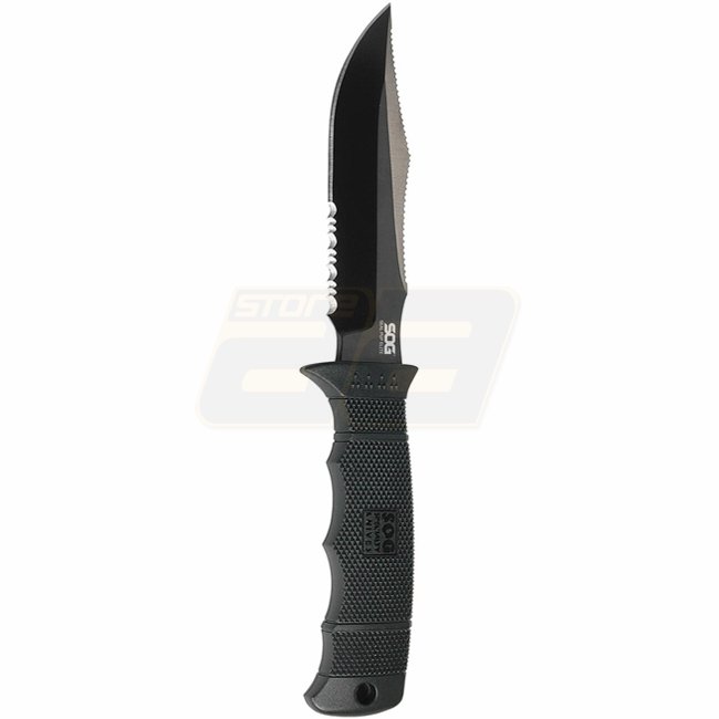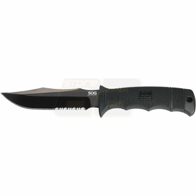 Compact and durable, the SOG Seal Pup Elite Serrated Black knife comes with a Kydex sheath for easy carry. Made from AUS-8 steel, it boasts a 123mm blade and a total length of 241mm. Featuring a strong glass-reinforced nylon handle, this knife weighs 153g
