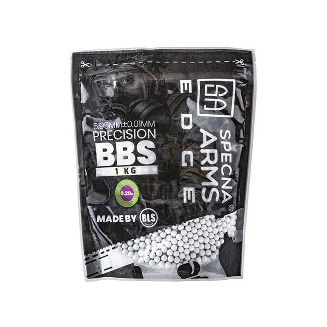 High-quality Specna Arms 0.20g EDGE Precision Bio BBs in convenient 1kg pack. The white color ensures visibility and accuracy during airsoft battles. Enjoy improved performance and reliability with these bio-degradable BBs.