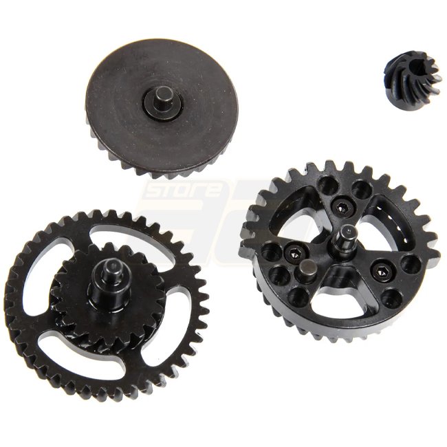 These helical gears were precisely manufactured using CNC machines. The skeletonization of the elements reduces the weight considerably. Combined with the tight tolerances and reinforced axles, this ensures quieter operation, less strain on the motor and therefore a reduction in energy requirements.