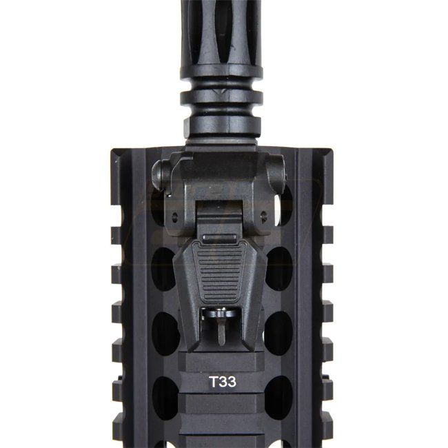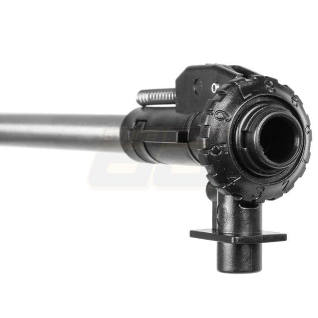 Thanks to the quick spring change system, the spring can be replaced in just a few steps. This strong package is rounded off by a powerful Hop-Up with rotating adjustment wheel and a high-quality Gearbox with its high-quality individual parts. These elements ensure high stability and precision, even with intensive use and maximum adaptability.