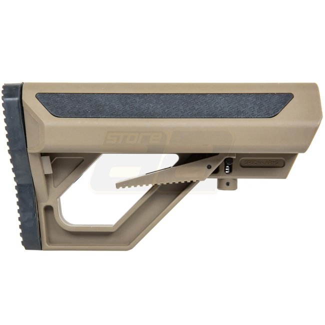 The Heavy Ops Stock has rubber inserts to provide a comfortable and stable cheek rest. There is enough space inside the stock to store even larger batteries such as triple LiPo batteries or the slightly larger LiIon batteries.