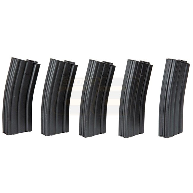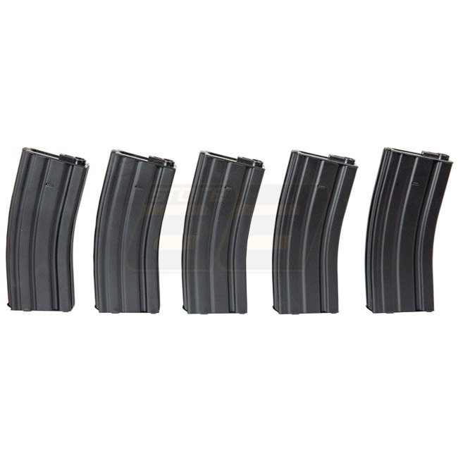 High-quality Specna Arms M4 magazine set in sleek black finish. Perfect for M4/M16 AEG rifles. Set of 5 magazines with a capacity of 300 rounds each. Durable steel construction ensures reliable performance.