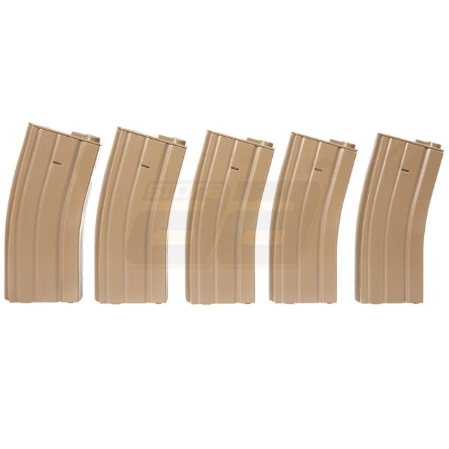 Specna Arms M4 30rds Polymer Magazine Set - Tan. Polymer material, suitable for M4/M16 AEG. Set contains 5 magazines, weighs 110g with a capacity of 30rds.