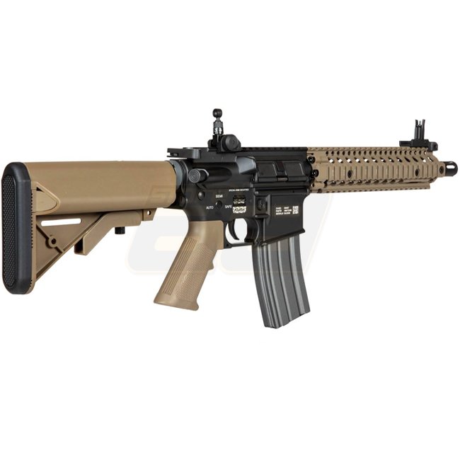 The stock and pistol grip are made of polymer plastic. The AEG uses the Enter & Convert™ quick spring change system. This allows for quick and efficient adjustment of the replica's performance to the expected conditions on the field, without the need for access to a workshop or a set of special tools - after removing the gearbox, the spring change itself takes literally seconds.