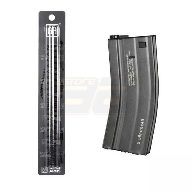 The models of the Specna Arms ONE series come with a metal body with individual serial number, which has been refined with a powder coated surface. Inside, a robust gearbox ensures reliability and flexibility, as it is equipped with the "Enter & Convert" or "SEAC" quick spring change system. This way the performance can be changed in just a few simple steps. In addition to the factory built-in spring, Specna Arms supplies an additional M90 spring, which can reduce the AEG's performance to approx. 310 FPS.