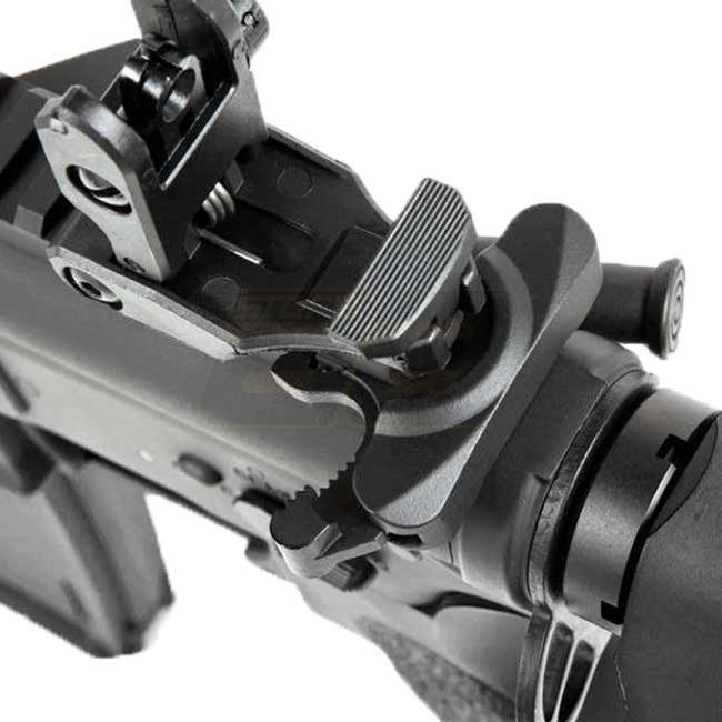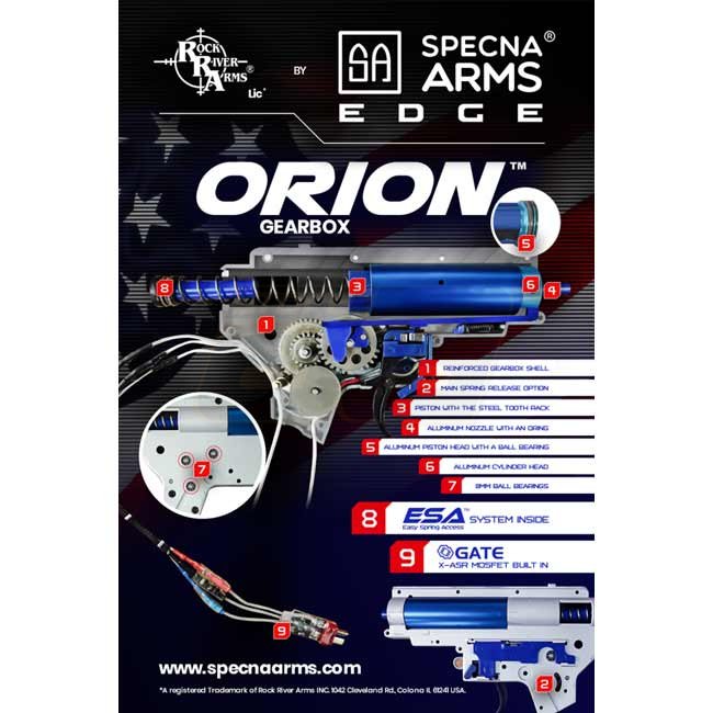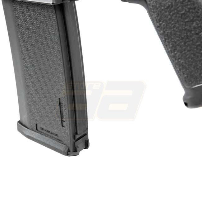 The models of the Specna Arms EDGE E-series come with a nano-coated metal body. Inside, a robust "ORION“ gearbox ensures reliability and flexibility, as it is equipped with the "ESA" quick spring change system. This way the performance can be changed in just a few simple steps. Furthermore, in the gearbox is already a GATE X-ASR mosfet installed. The built-in parts allow the use of springs of different strengths (up to M140). The 6.03mm inner barrel combined with a rotary precision HopUp Unit ensures the necessary precision. In addition to the factory built-in spring, Specna Arms supplies an additional M90 spring, which can reduce the AEG's performance to approx. 310 FPS.