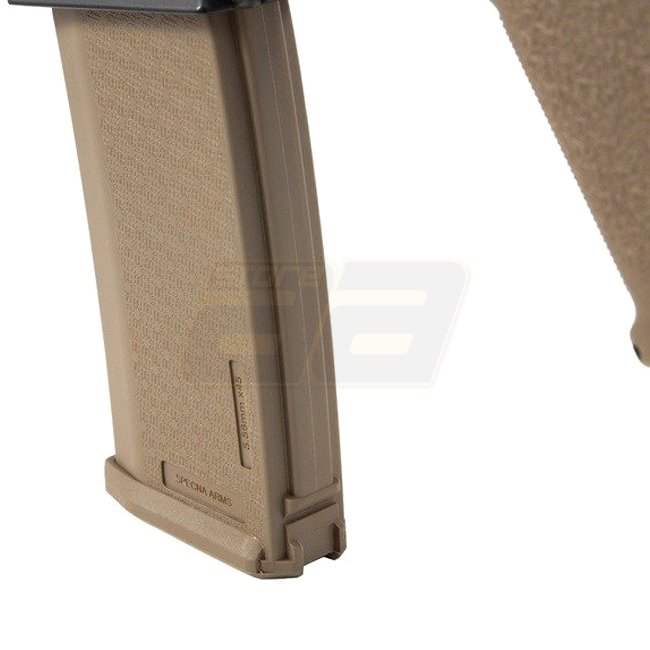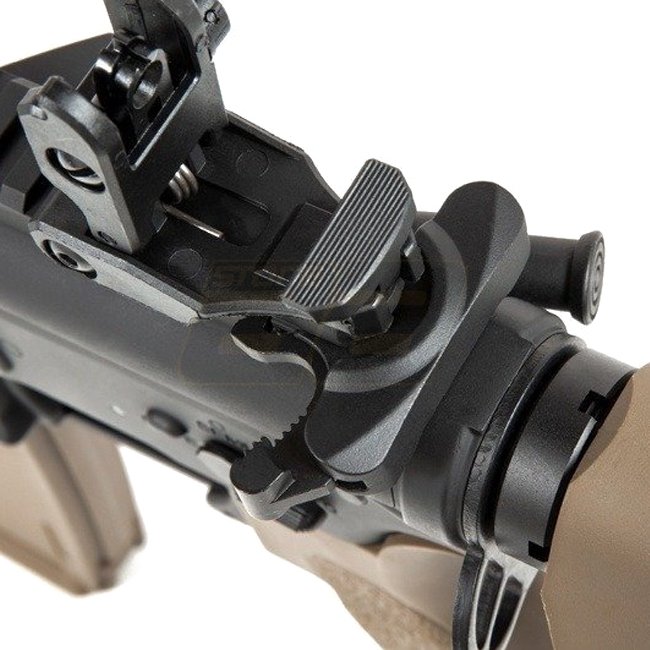 The models of the Specna Arms EDGE E-series come with a nano-coated metal body. Inside, a robust "ORION“ gearbox ensures reliability and flexibility, as it is equipped with the "ESA" quick spring change system. This way the performance can be changed in just a few simple steps. Furthermore, in the gearbox is already a GATE X-ASR mosfet installed. The built-in parts allow the use of springs of different strengths (up to M140). The 6.03mm inner barrel combined with a rotary precision HopUp Unit ensures the necessary precision. In addition to the factory built-in spring, Specna Arms supplies an additional M90 spring, which can reduce the AEG's performance to approx. 310 FPS.