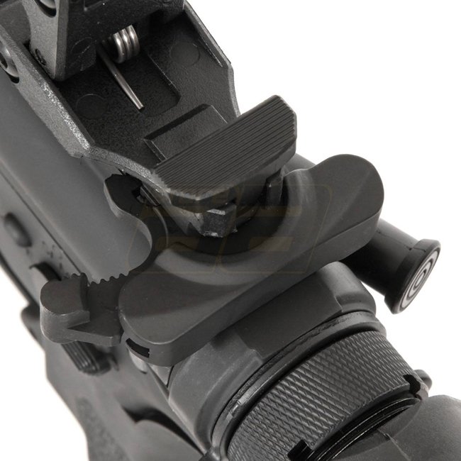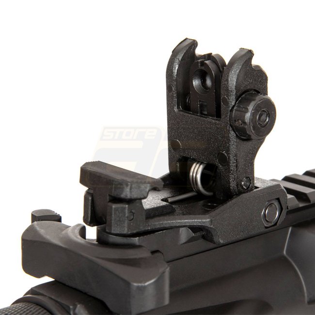 Highly versatile Specna Arms SA-E06 EDGE 2.0 AEG - Black with nano-coated metal body for durability. Equipped with "ORION" gearbox featuring "ESA2" quick spring change system for easy performance adjustment. Built-in GATE ASTER mosfet and M140 spring comp