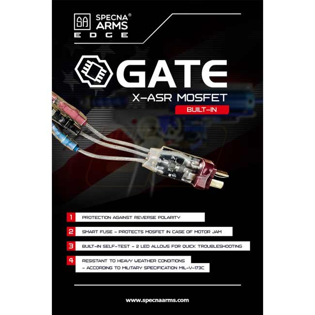 The models of the Specna Arms EDGE E-series come with a nano-coated metal body. Inside, a robust "ORION“ gearbox ensures reliability and flexibility, as it is equipped with the "ESA" quick spring change system. This way the performance can be changed in just a few simple steps. Furthermore, in the gearbox is already a GATE X-ASR mosfet installed. The built-in parts allow the use of springs of different strengths (up to M140). The 6.03mm inner barrel combined with a rotary precision HopUp Unit ensures the necessary precision. In addition to the factory built-in spring, Specna Arms supplies an additional M90 spring, which can reduce the AEG's performance to approx. 310 FPS.