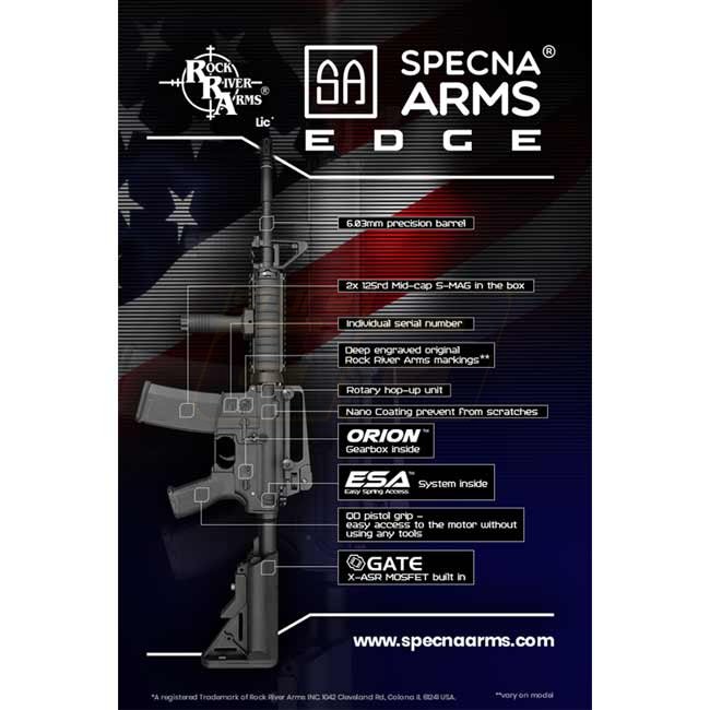 Specna Arms SA-E06 EDGE RRA AEG - Dual Tone - High-quality airsoft rifle with superior performance. Features nano-coated metal body, "ORION" gearbox, "ESA" quick spring change system for easy performance adjustments, GATE X-ASR mosfet for enhanced control