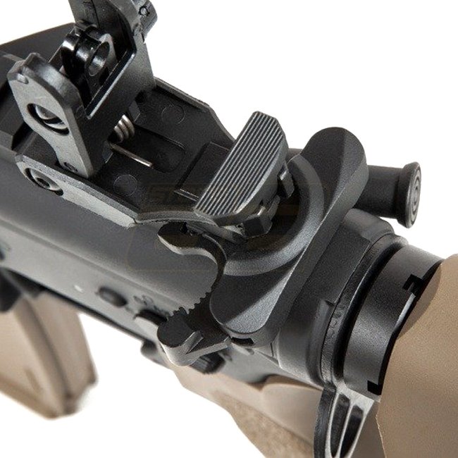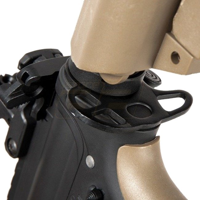 The models of the Specna Arms EDGE E-series come with a nano-coated metal body. Inside, a robust "ORION“ gearbox ensures reliability and flexibility, as it is equipped with the "ESA" quick spring change system. This way the performance can be changed in just a few simple steps. Furthermore, in the gearbox is already a GATE X-ASR mosfet installed. The built-in parts allow the use of springs of different strengths (up to M140). The 6.03mm inner barrel combined with a rotary precision HopUp Unit ensures the necessary precision. In addition to the factory built-in spring, Specna Arms supplies an additional M90 spring, which can reduce the AEG's performance to approx. 310 FPS.