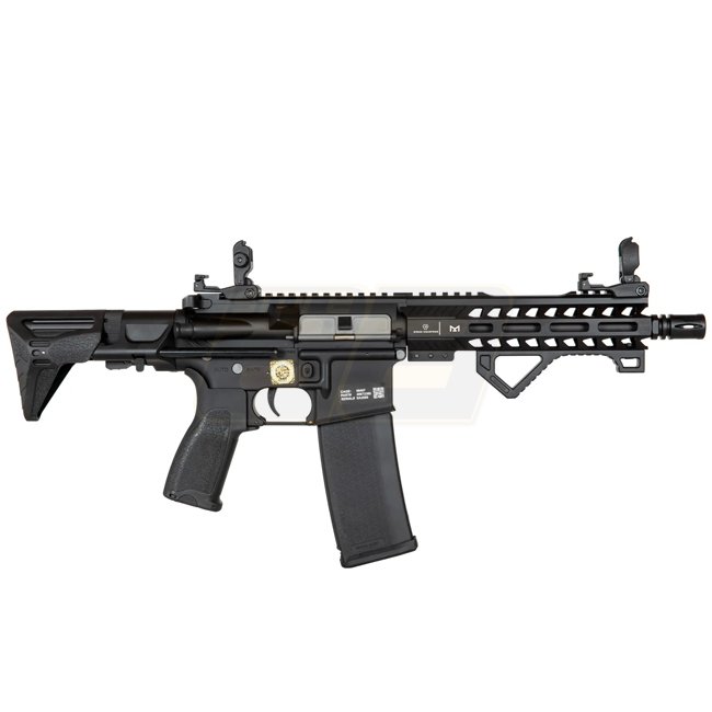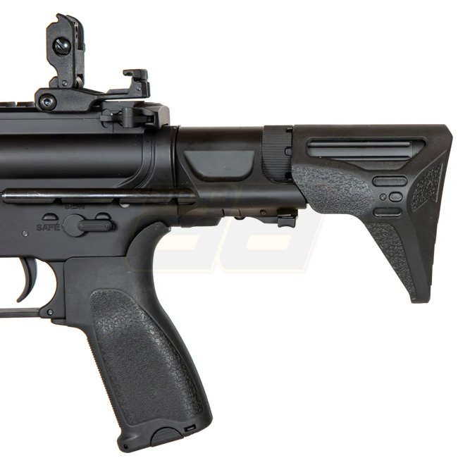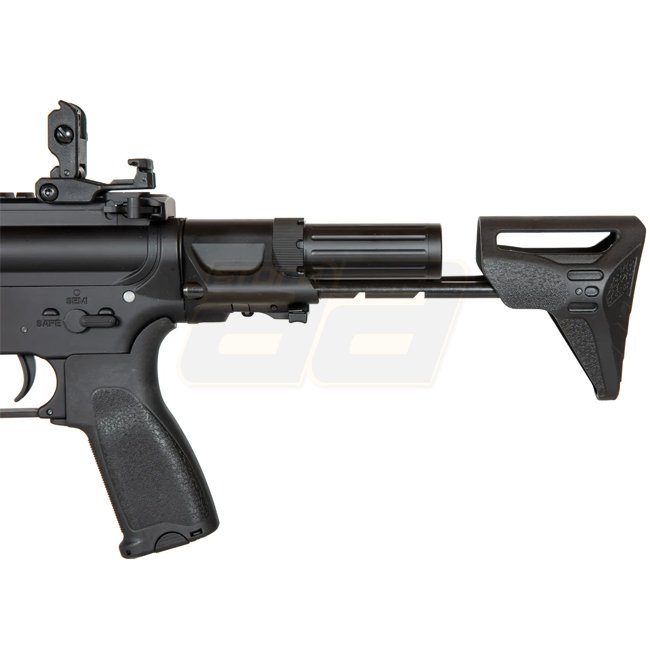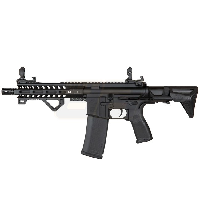 Specna Arms SA-E17 EDGE PDW RRA & SI AEG - Black is a high-performance airsoft gun with a sturdy metal construction and polymer stock & pistol grip. It features a Version 2 gearbox, MOSFET for improved performance, and a short type motor. This AEG has a m