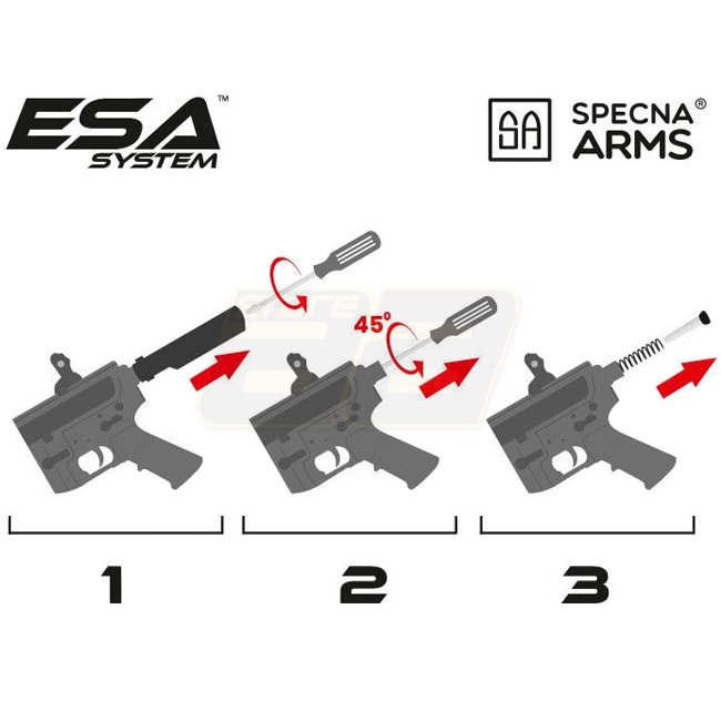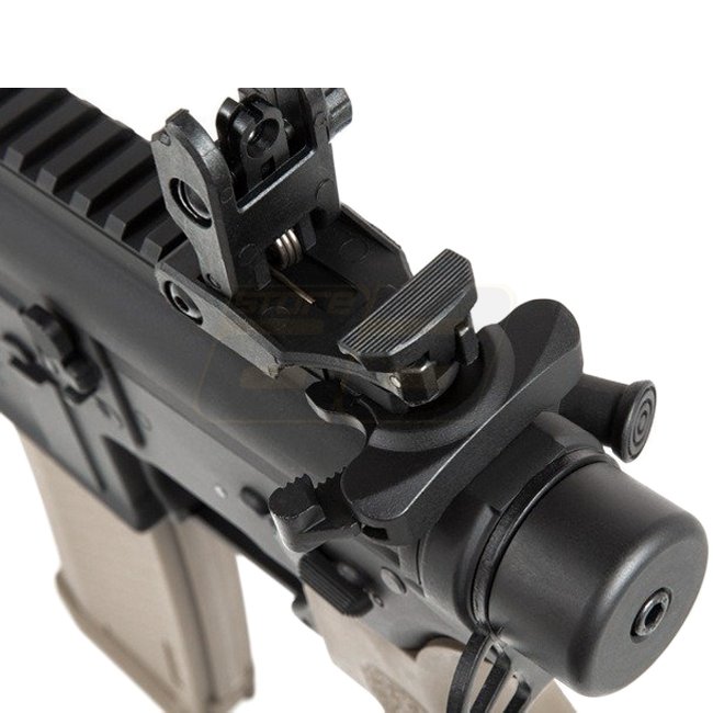 The models of the Specna Arms EDGE E-series come with a nano-coated metal body. Inside, a robust "ORION“ gearbox ensures reliability and flexibility, as it is equipped with the "ESA" quick spring change system. This way the performance can be changed in just a few simple steps. Furthermore, in the gearbox is already a GATE X-ASR mosfet installed. The built-in parts allow the use of springs of different strengths (up to M140). The 6.03mm inner barrel combined with a rotary precision HopUp Unit ensures the necessary precision. In addition to the factory built-in spring, Specna Arms supplies an additional M90 spring, which can reduce the AEG's performance to approx. 310 FPS.