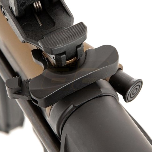 The models of the Specna Arms EDGE E-series come with a nano-coated metal body. Inside, a robust "ORION“ gearbox ensures reliability and flexibility, as it is equipped with the "ESA" quick spring change system. This way the performance can be changed in just a few simple steps. Furthermore, in the gearbox is already a GATE X-ASR mosfet installed. The built-in parts allow the use of springs of different strengths (up to M140). The 6.03mm inner barrel combined with a rotary precision HopUp Unit ensures the necessary precision. In addition to the factory built-in spring, Specna Arms supplies an additional M90 spring, which can reduce the AEG's performance to approx. 310 FPS.