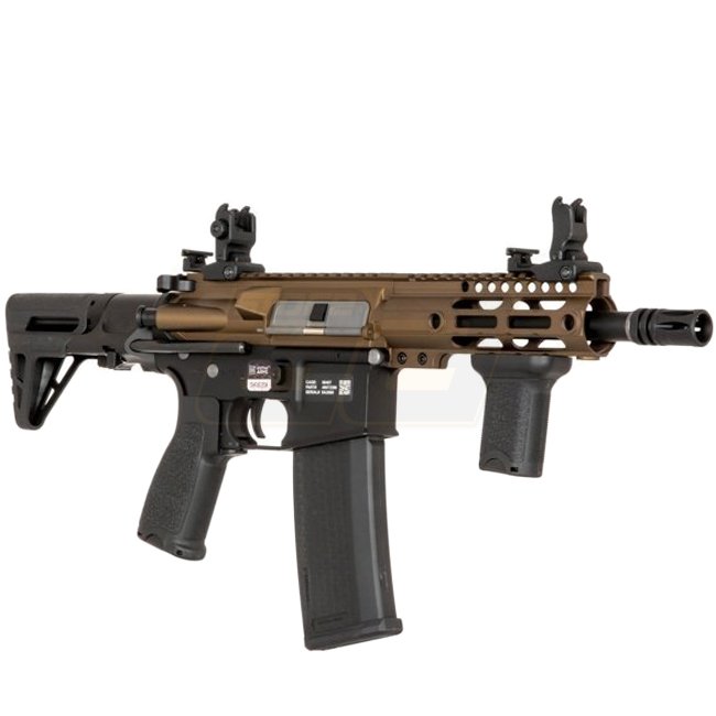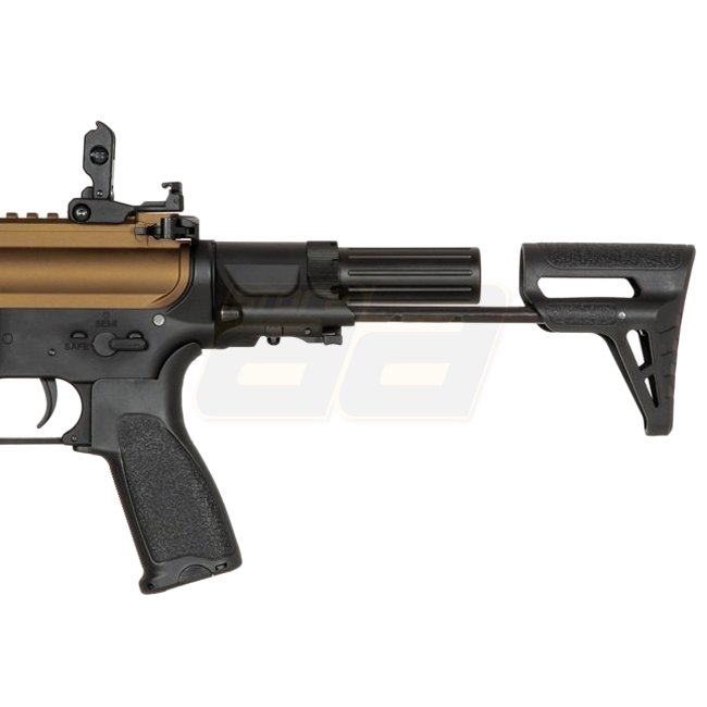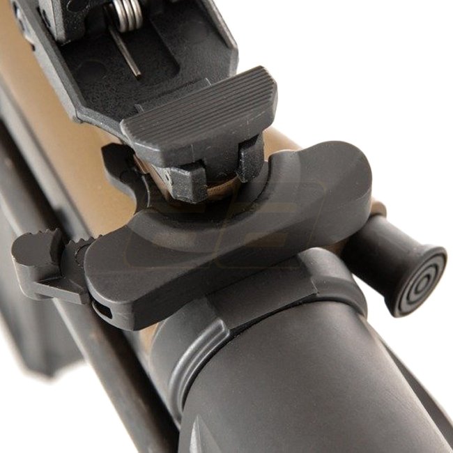 The models of the Specna Arms EDGE E-series come with a nano-coated metal body. Inside, a robust "ORION“ gearbox ensures reliability and flexibility, as it is equipped with the "ESA" quick spring change system. This way the performance can be changed in just a few simple steps. Furthermore, in the gearbox is already a GATE X-ASR mosfet installed. The built-in parts allow the use of springs of different strengths (up to M140). The 6.03mm inner barrel combined with a rotary precision HopUp Unit ensures the necessary precision. In addition to the factory built-in spring, Specna Arms supplies an additional M90 spring, which can reduce the AEG's performance to approx. 310 FPS.