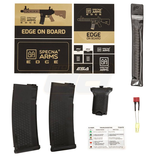 The models of the Specna Arms EDGE E-series come with a nano-coated metal body. Inside, a robust "ORION“ gearbox ensures reliability and flexibility, as it is equipped with the "ESA" quick spring change system. This way the performance can be changed in just a few simple steps. Furthermore, in the gearbox is already a GATE X-ASR mosfet installed. The built-in parts allow the use of springs of different strengths (up to M140). The 6.03mm inner barrel combined with a rotary precision HopUp Unit ensures the necessary precision. In addition to the factory built-in spring, Specna Arms supplies an additional M90 spring, which can reduce the AEG's performance to approx. 310 FPS.
