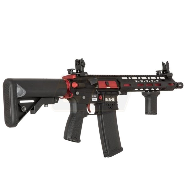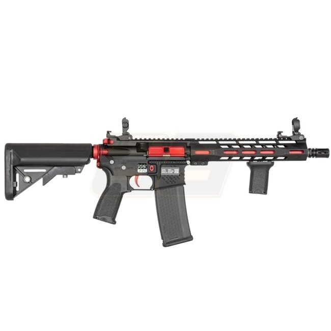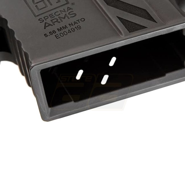 The models of the Specna Arms EDGE E-series come with a nano-coated metal body. Inside, a robust "ORION“ gearbox ensures reliability and flexibility, as it is equipped with the "ESA" quick spring change system. This way the performance can be changed in just a few simple steps. Furthermore, in the gearbox is already a GATE X-ASR mosfet installed. The built-in parts allow the use of springs of different strengths (up to M140). The 6.03mm inner barrel combined with a rotary precision HopUp Unit ensures the necessary precision. In addition to the factory built-in spring, Specna Arms supplies an additional M90 spring, which can reduce the AEG's performance to approx. 310 FPS.