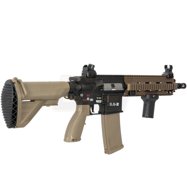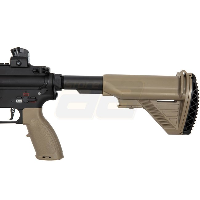 The models of the Specna Arms EDGE 2.0 E-series come with a nano-coated metal body. Inside, a robust "ORION“ gearbox ensures reliability and flexibility, as it is equipped with the "ESA2" quick spring change system. This way the performance can be changed in just a few simple steps. Furthermore, in the gearbox is already a GATE ASTER mosfet installed. The built-in parts allow the use of an M140 spring. The 6.03mm inner barrel combined with a Flat-Hop Up ensures the necessary precision. In addition to the factory built-in spring, Specna Arms supplies an additional M90 spring, which can reduce the AEG's performance to approx. 310 FPS.