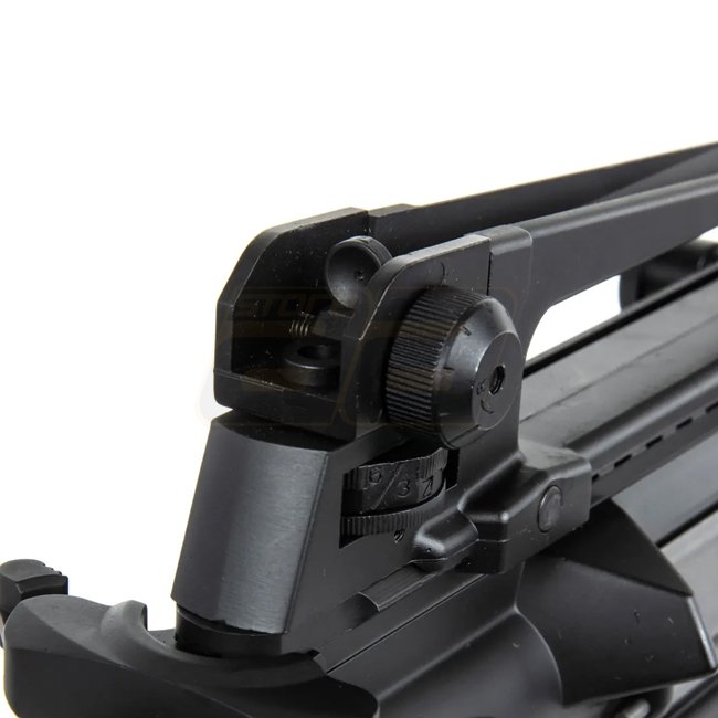 Thanks to the quick spring change system, the spring can be replaced in just a few steps. This strong package is rounded off by a powerful Hop-Up with rotating adjustment wheel and a high-quality Gearbox with its high-quality individual parts. These elements ensure high stability and precision, even with intensive use and maximum adaptability.