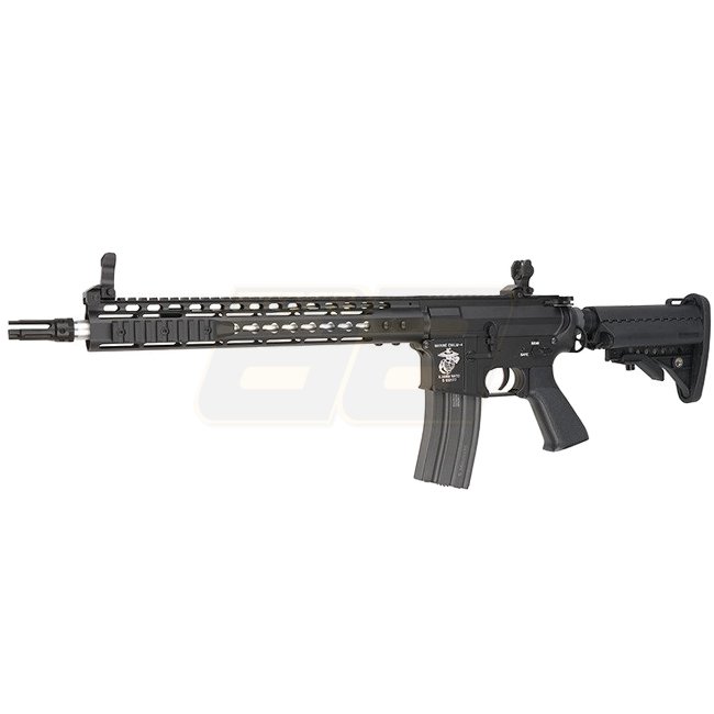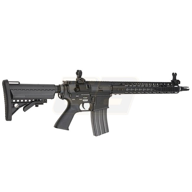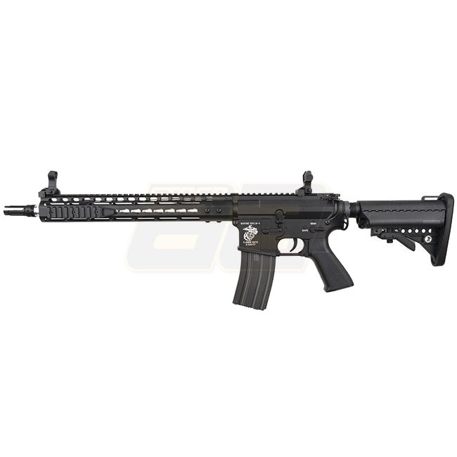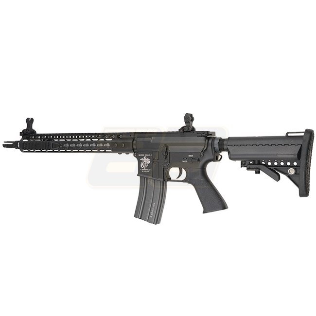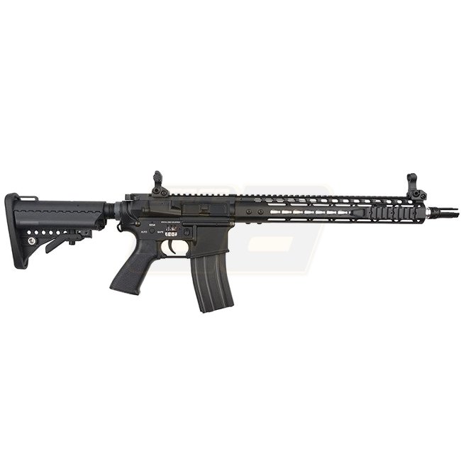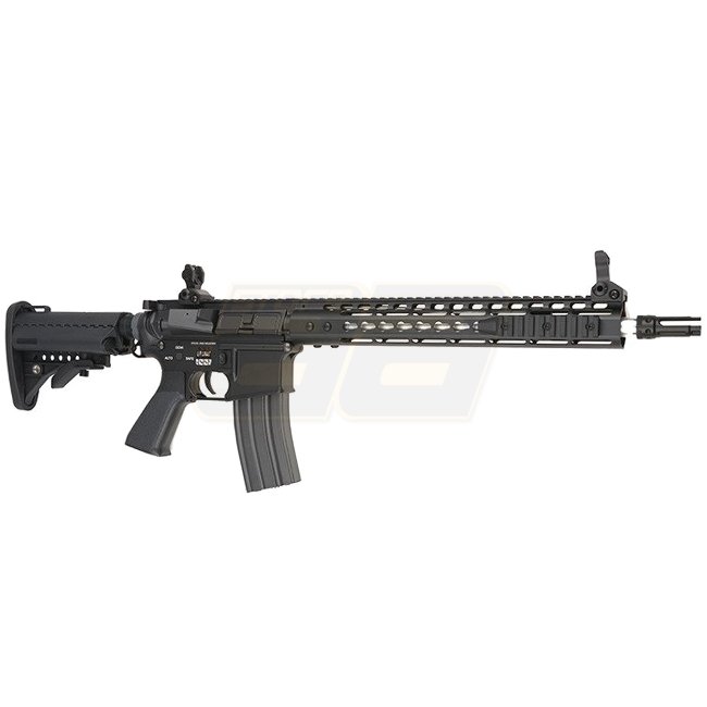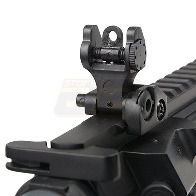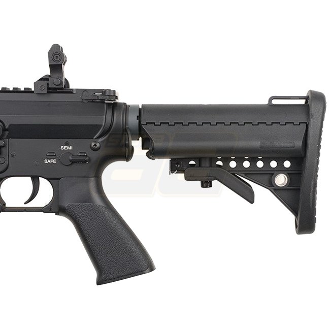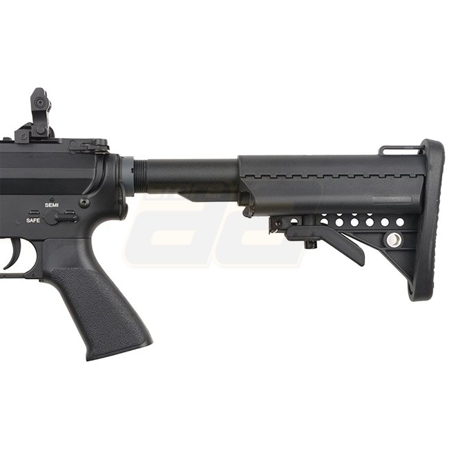 High-quality Specna Arms SA-V07 AEG in Black color with metal gearbox, long motor, and 300-round magazine capacity. Semi & full auto shooting mode, adjustable hop-up, and shooting range of 56.25-58.99m. Comes with additional accessories.