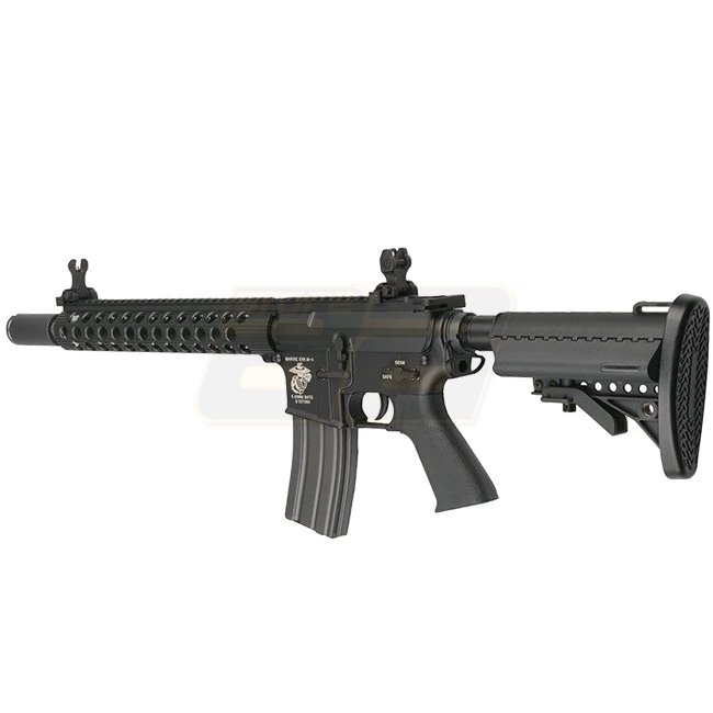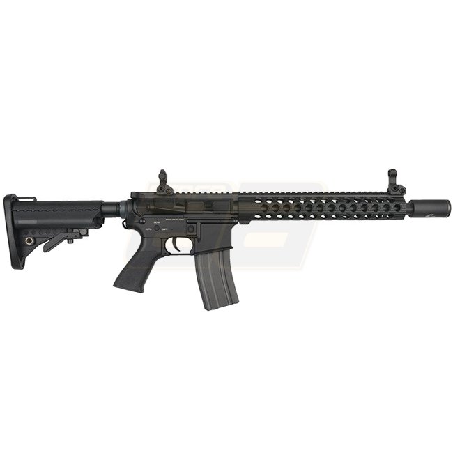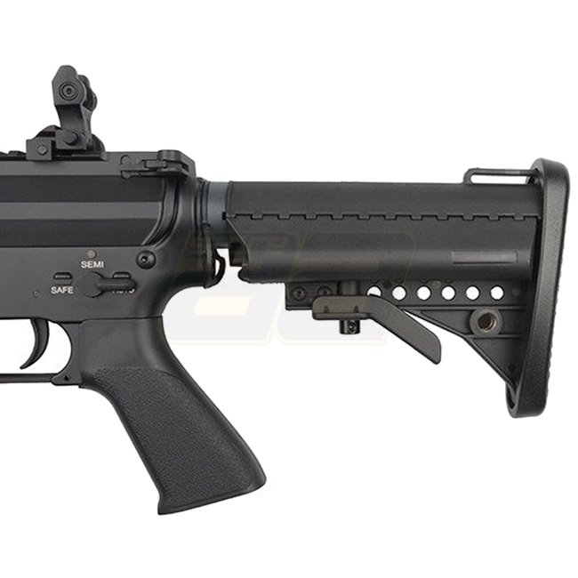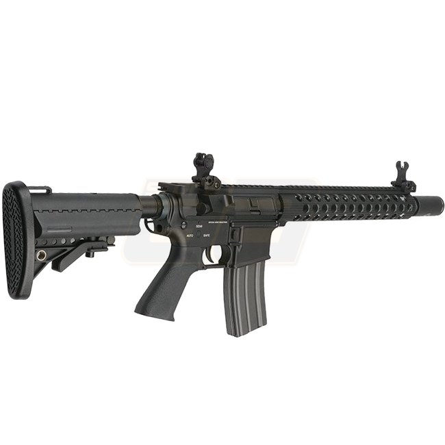Get ready to dominate the battlefield with the Specna Arms SA-V13 AEG in sleek black. Full metal construction with polymer stock and pistol grip. Semi & full auto firing modes, adjustable hop-up, and shooting range up to 61.74m. Package includes gun, maga