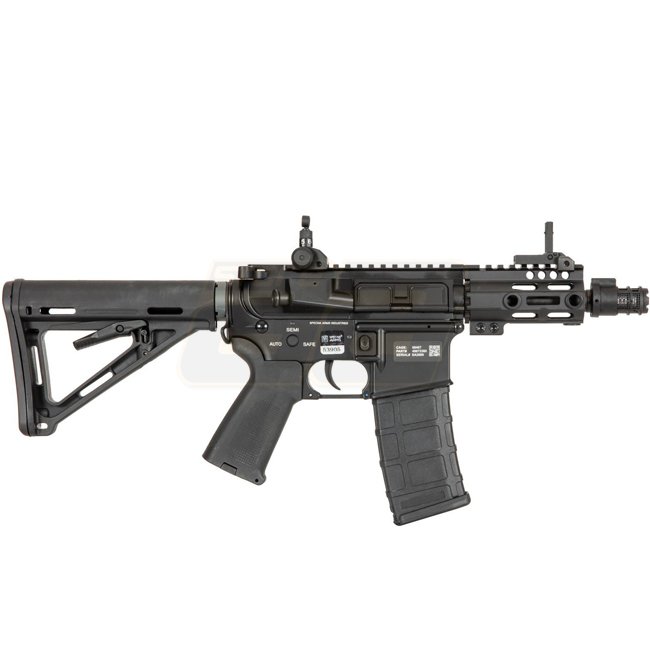 The models of the Specna Arms ONE series come with a metal body with individual serial number, which has been refined with a powder coated surface. Inside, a robust gearbox ensures reliability and flexibility, as it is equipped with the "Enter & Convert" or "SEAC" quick spring change system. This way the performance can be changed in just a few simple steps. In addition to the factory built-in spring, Specna Arms supplies an additional M90 spring, which can reduce the AEG's performance to approx. 310 FPS.