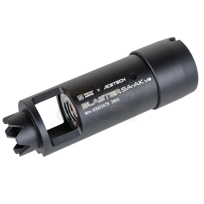 The Specna Arms x AceTech BlASTER SA-AK V2 Tracer is designed specifically for AK platforms with 24 mm external threads. It combines advanced tracer technology with an impressive muzzle flash effect. Developed in collaboration with AceTech, the unit matches the design and tactical aesthetics of the SA-AK series by Specna Arms.