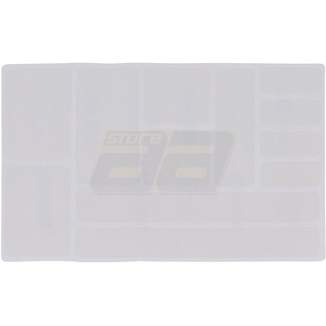 12-part set of patches for quick repair of e.g. outdoor clothing, tents, bags consists of: 4 small patches ca. 4 x 2 cm 2 square patches ca. 4,2 x 4,2 cm 2 long patches ca. 15,5 x 2,5 cm 4 rectangular patches: 2 x ca. 7 x 4,2 cm 1 x ca. 8,7 x 4 cm 1 x ca. 8,7 x 2,5 cm adheres on nearly all kinds of materials clean the damaged spot and press on the patch firmly