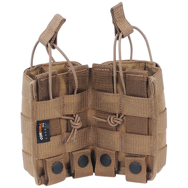 Tasmanian Tiger 2 Magazine Pouch Bungee M4 - Coyote. Elastic closure, 2x AR15/M4/M16 mags, 3 front MOLLE stripes.