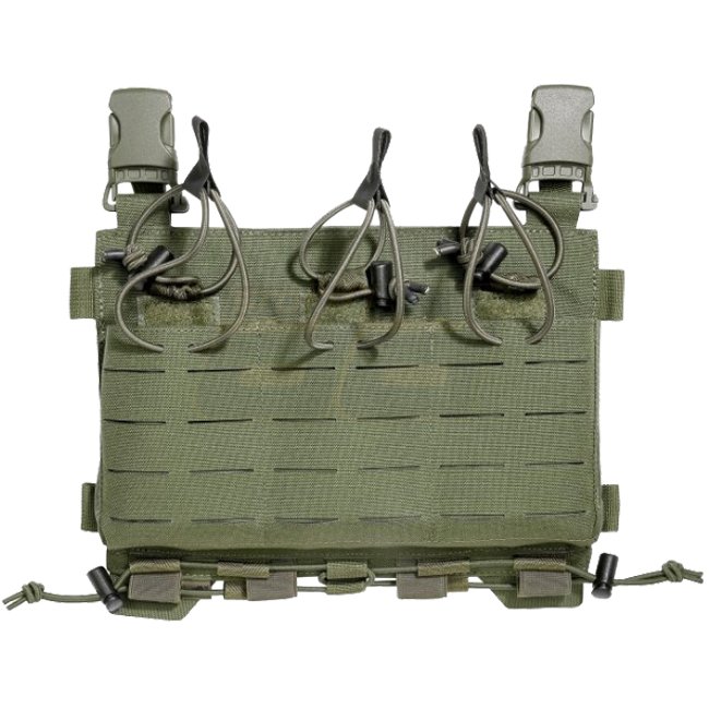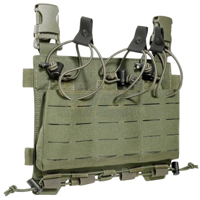 Laser-cut replacement front panel with three (S-M) or four (L-XL) permanently sewed on magazine pouches for M4, G36, PMAG, Steyr, etc. It is to be used for TT Plate Carrier MK III and TT Plate Carrier LC. With MOLLE SR buckles.