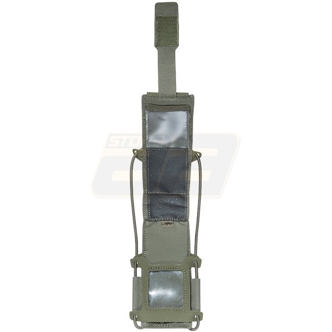 Small, folding flap radio pouch ( 15 cm x 7 cm) for digital radio devices. The bag has an adjustable flap angle and a display protector made of vinyl. Made of CORDURA® and material with IRR treatment. Both the European CORDURA® materials as well as web-bing, hook-and-loop fasteners and buckles meet the high German Bundeswehr standards TL 8305-0278 and TL 8305-0281 with regard to the IRR camouflage effect (IRR 650 – 1250nm / 10 – 42%).