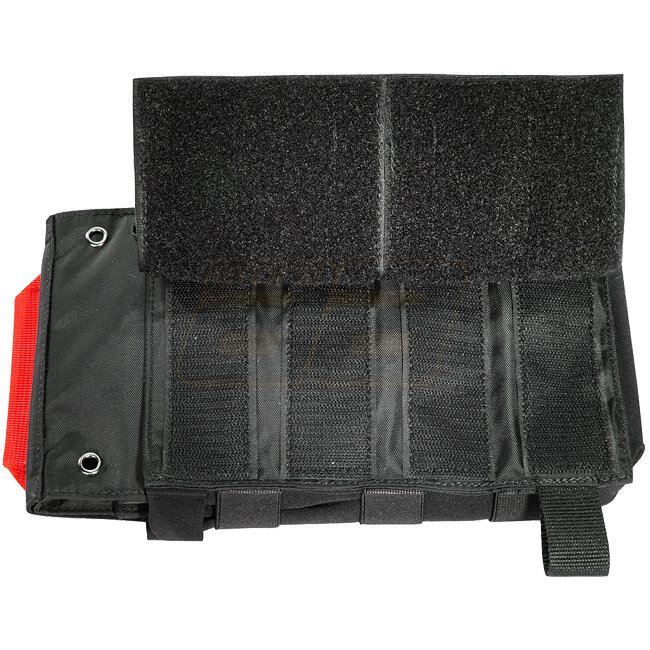 First-aid kit with MOLLE hook and loop attachment. The TT IFAK Pouch VL L features hook panels for easy attachment to loop counterparts, for example directly on the TT Modular Front Seat Panel. It has a MOLLE hook and loop adapter. The IFAK kit is accessed from the side of the pouch. Made of CORDURA® and material with IRR treatment. Both the European CORDURA® materials as well as web-bing, hook-and-loop fasteners and buckles meet the high German Bundeswehr standards TL 8305-0278 and TL 8305-0281 with regard to the IRR camouflage effect (IRR 650 – 1250nm / 10 – 42%).