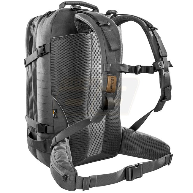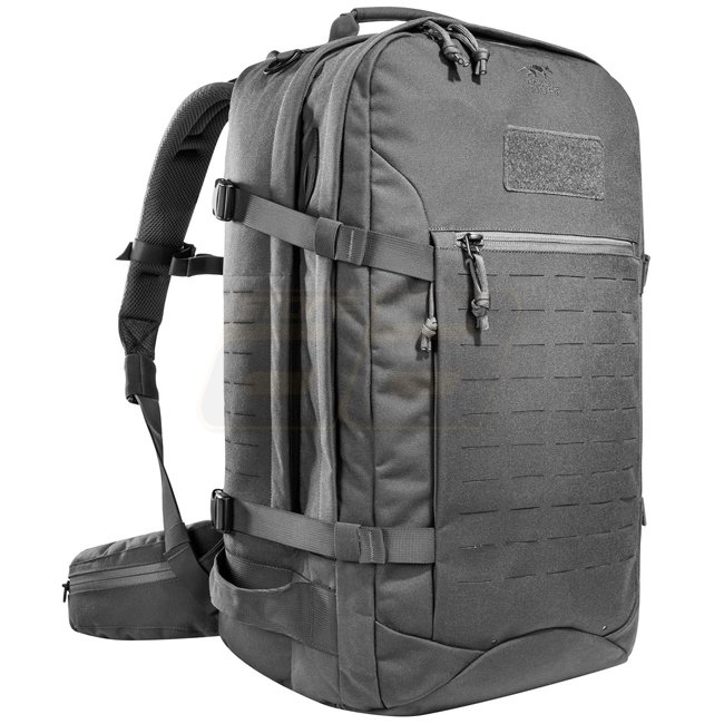 Proven combat backpack with a capacity of 37 liters, two main compartments and several inner pockets. The Tasmanian Tiger Mission Pack MK II offers several inner pockets and also features MOLLE hook-and-loop lining in the main compartment for individual loading or modular extensions. On the sides and the flat zip front pocket the backpack is equipped with MOLLE in lasercut design. A side zip pocket, accessible from the outside, is provided for documents. The backpack has three tube or antenna openings in the main compartments, so that a drinking bladder can also be accommodated. A rain cover is stowed in the bottom compartment. The hip wings with zip pockets are removable.
